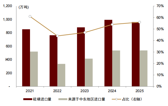 图表:我国进口自中东地区硫磺占比