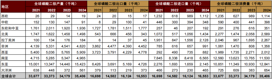 图表:全球磷酸二铵产量、消费量及出口量