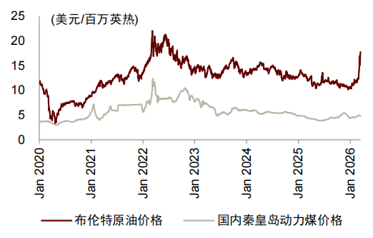 中国天然气供应冲击相对可控。据路透社统计,2025年中国自卡塔尔及阿联酋进口LNG合计248亿方,占2025年中国表观消费量6%,考虑到国产气产量增加及部分沿海发电用天然气需求可被煤炭替代,我们认为中国天然气供应本次受冲击较小,国内价格发生大幅波动概率相对较低。