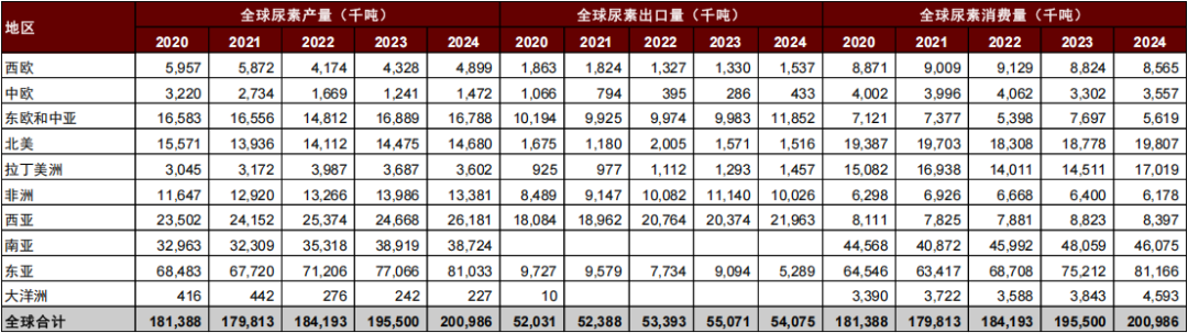 图表:全球尿素产量及出口量