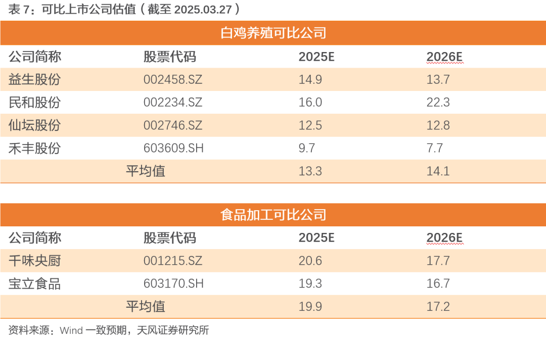 投资建议:重视公司业绩弹性和估值相对低位!我们预计公司2024-2026年营业收入201.33/ 232.25/ 263.59亿元,归母净利润7.36/ 17.70/ 23.05亿元;对应EPS为0.59/ 1.42/ 1.85元,当前股价对应25-26年PE为10.6/ 8.1x。鉴于祖代引种持续受限,叠加促消费政策提振,预计行业后续有望景气上行;看好公司作为国内白鸡龙头,全产业链布局和综合成本等优势显著,维持“买入”评级。