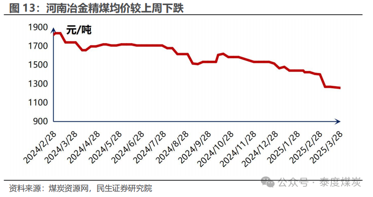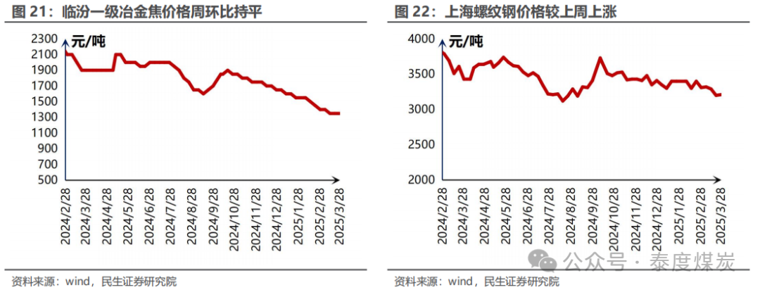 据Wind数据,本周临汾一级冶金焦价格为1350元/吨,周环比持平;太原一级冶金焦价格为1150元/吨,周环比持平。