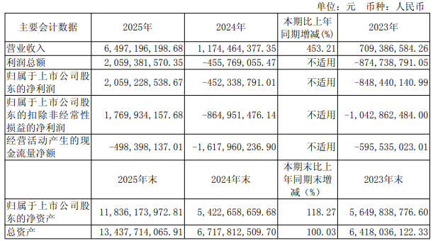 AI芯片龙头寒武纪2025年全年实现营业收入64.97亿元,同比大增453.21%;归母净利润20.59亿元,这是该公司登陆科创板以来首次实现年度盈利。
