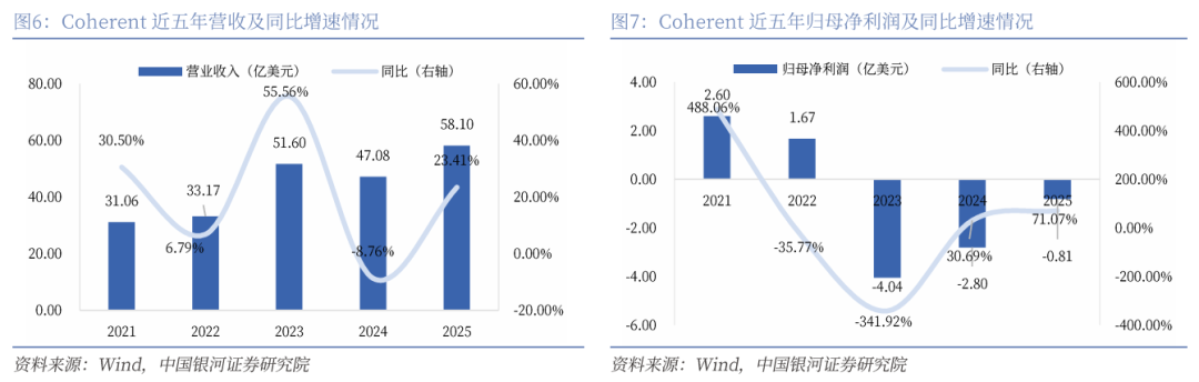 (二)Coherent于数据中心与通信行业需求受益,营收增长稳健