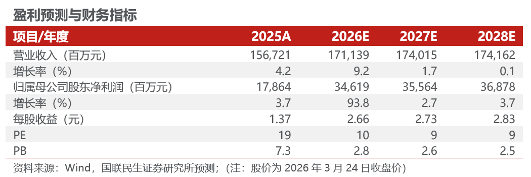 ◾事件:公司发布2025年报。1)业绩:25年公司实现营收1567.2亿元,同比 4.3%(调整后,下同),归母净利润178.6亿,同比 3.7%,扣非归母净利润-3.7亿元,同比亏损增加2.8亿元。2025年公司完成收购宏拓实业100%股权,非经常损益合计182.3亿元;单季度看,25Q4营收409.8亿元,环比 6.5%,归母净利润40.2亿元,环比-19.8%,扣非归母净利润-1.9亿元,环比亏损增加1.4亿元;2)分红:25年拟每10股派发现金红利2.5元(含税),合计现金分红32.6亿元,分红率18.3%,股息率0.9%。