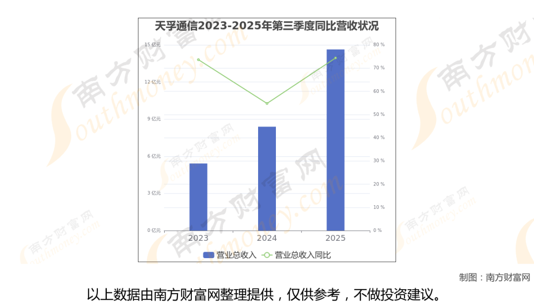 天孚通信披露了2025年第三季度财报。报告显示(如上图),天孚通信2025年第三季度实现营收14.63亿元,同比74.37%。