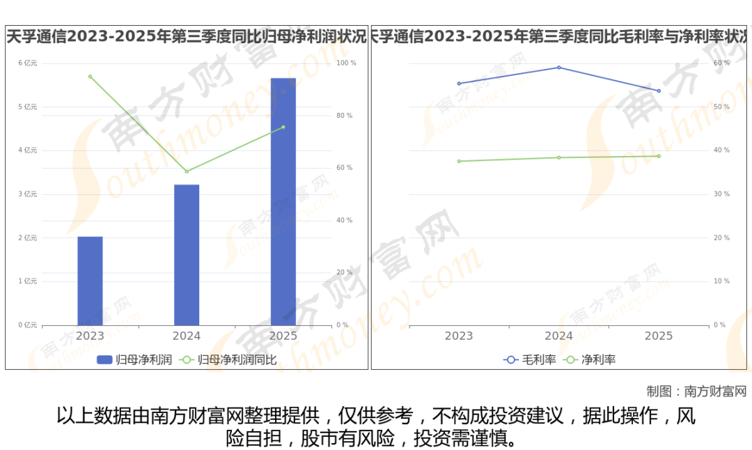 2025年第三季度季报显示,天孚通信公司毛利率53.68%,净利率38.72%,归属净利润5.66亿,同比增长75.68%。