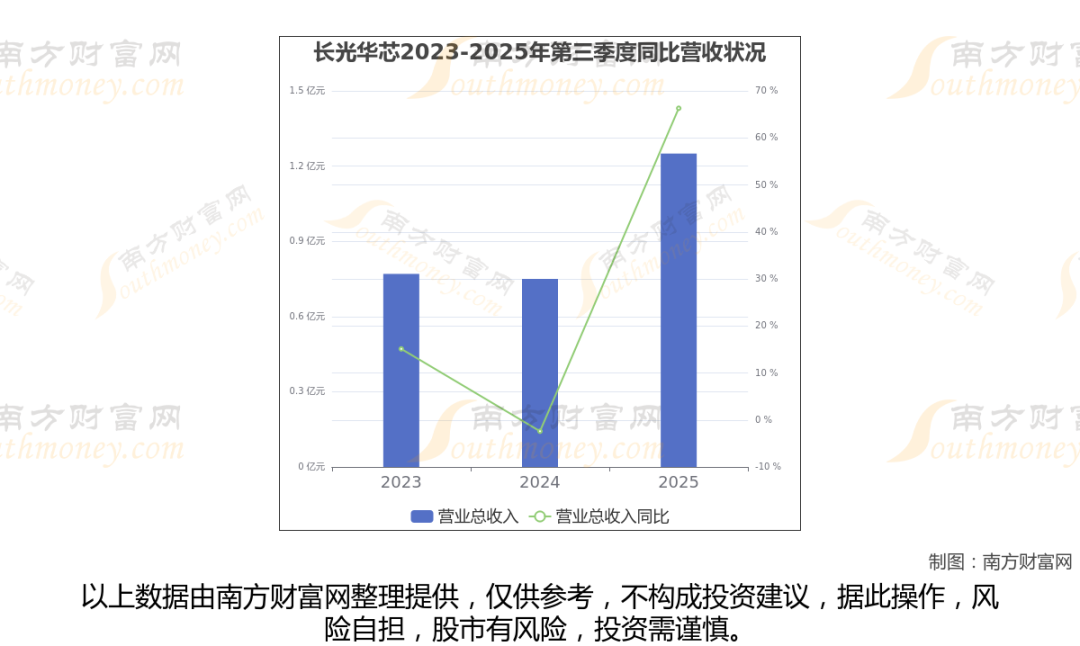 在2025年第三季度,长光华芯的业绩表现(如上图),主营业务收入达到1.25亿元,实现了66.3%的同比增长率。