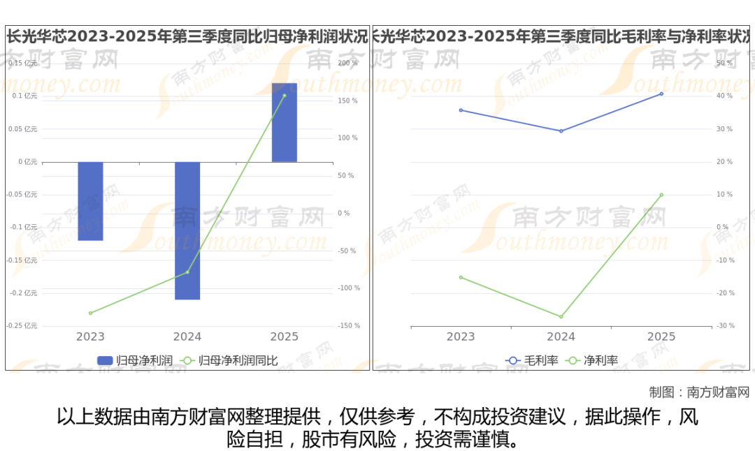 2025年第三季度季报显示,长光华芯公司实现净利润1196.8万,同比上年增长率为157.25%,毛利率40.75%,归属净利润1196.8万,同比增长157.25%。