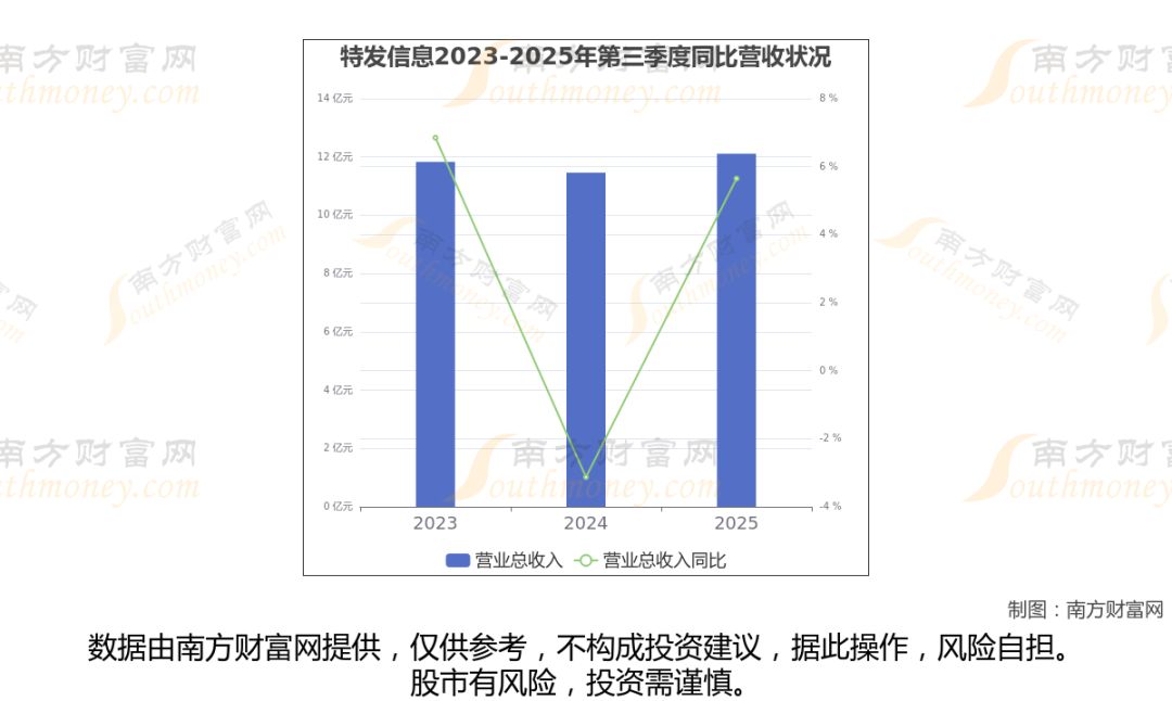 特发信息2025年第三季度报告显示(如上图),公司实现主营业务收入12.11亿元,较去年同期增长5.65%。