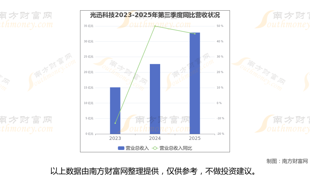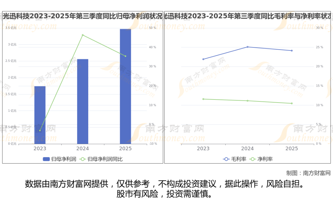 2025年第三季度季报显示,光迅科技公司实现净利润3.47亿,同比上年增长率为35.42%,毛利率24.14%,归属净利润3.47亿,同比增长35.42%。