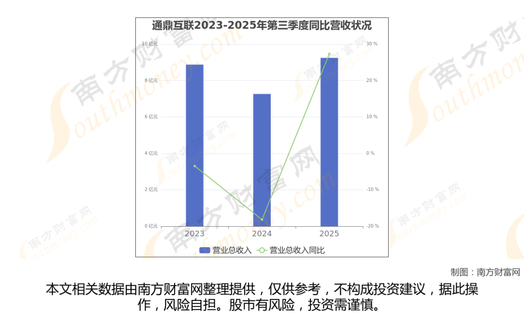 通鼎互联披露了2025年第三季度财报。报告显示(如上图),通鼎互联2025年第三季度实现营收9.24亿元,同比27.27%。