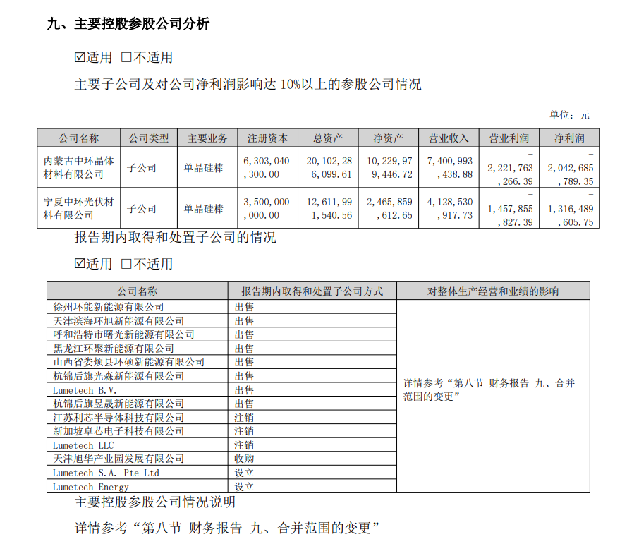 面对产业供需失衡压力,公司光伏材料业务聚焦技术创新、精益制造和运营提质增效工作。报告期内,公司光伏材料板块实现营业收入122.38亿元,同比减少26.49%,硅片市占率居于行业第一,销售规模行业领先。