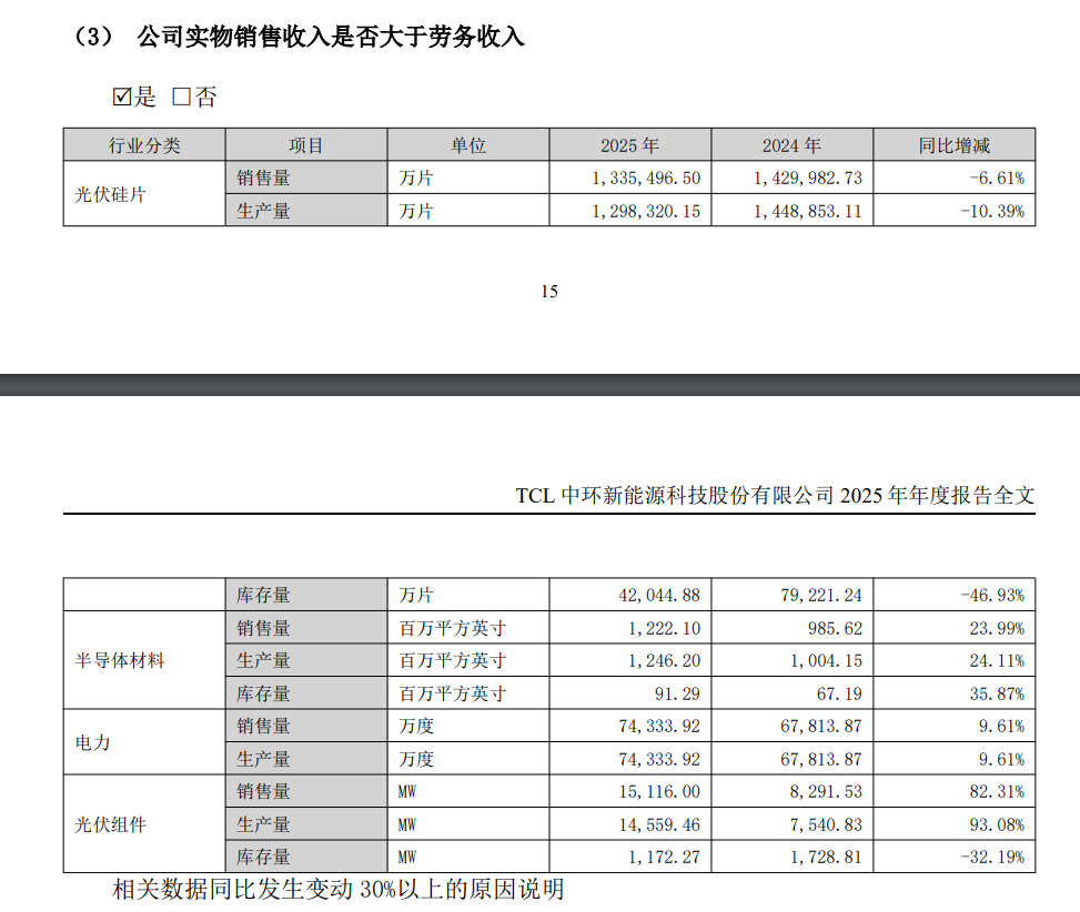 品牌矩阵全面焕新,海外渠道实现突破。报告期内,公司光伏电池及组件业务TCLSolar、SUNPOWER双品牌矩阵获得客户高度认可,品牌影响力显著提升。同时,公司组件拓展全球销售渠道,2025年公司国内及海外市场出货均实现大幅增长,其中海外市场已实现GW级突破。