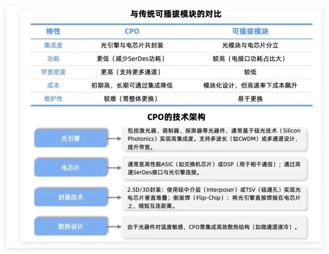 在AI训练集群中,CPO技术可解决GPU间通信瓶颈,支持万卡级AI集群高效训练。