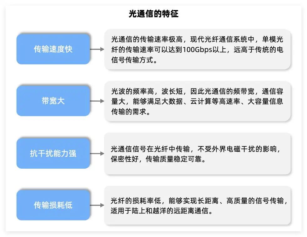 与传统的电通信相比,光通信具有更高的带宽和传输速率。