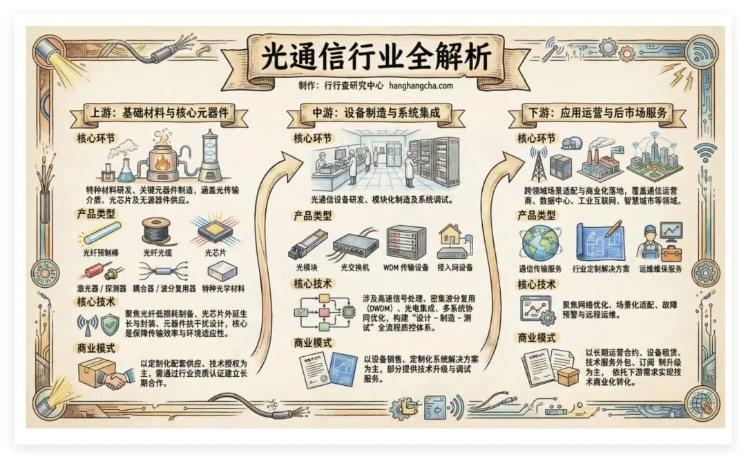 光通信产业链下游主要包括光通信设备商、电信网络运营商、数据中心及云服务提供商,以及新兴应用领域的企业和用户。
