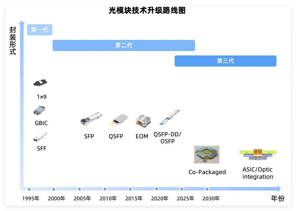 光模块每一代技术升级往往伴随技术路径的演化,引导竞争格局变化。