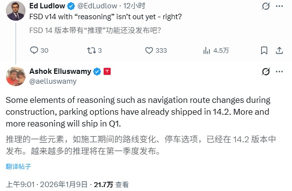 马斯克表示,更多的推理功能将在2026年第一季度陆续推送,使系统进一步向“有感知的智能体”目标靠近随着FSD v14.2版本开始推送,特斯拉车主将体验到更接近人类决策风格的自动驾驶行为。系统在施工路段绕行、自动泊车等场景中已能做出上下文相关决策。特斯拉从基于规则驱动向推理驱动的转变,标志着自动驾驶技术正从单纯感知响应迈向具备情境意识的认知阶段。这一转变不仅影响驾驶体验,更将重新定义人车关系与交通出行未来。