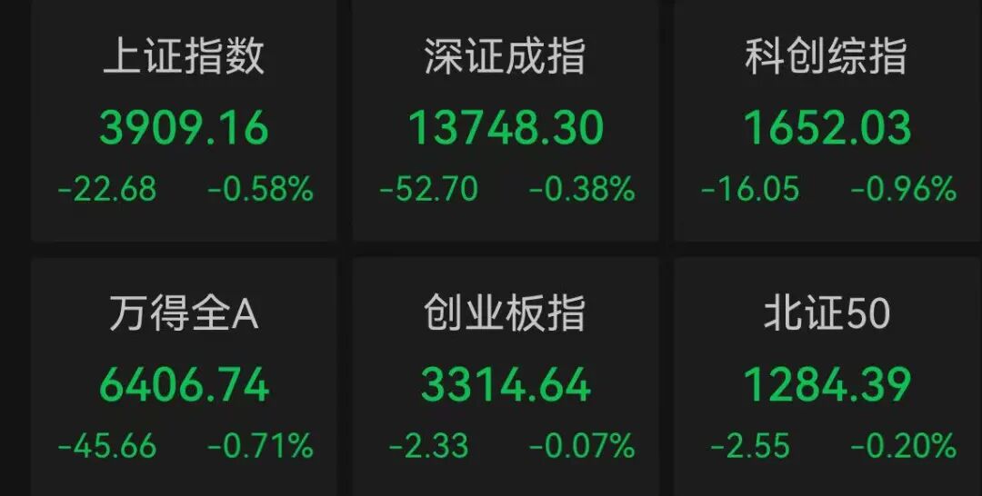 在经历两天的反弹后,今天上午,A股震荡调整。截至上午收盘,上证指数下跌0.58%,深证成指下跌0.38%,创业板指下跌0.07%,科创综指下跌0.96%。