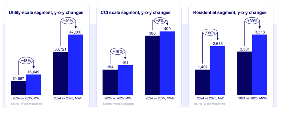税收激励政策也推动了户用领域创纪录的表现,尽管方式并不那么积极。去年,户用储能装机量达2.7GW,较2024年增长92%,这在很大程度上是由于购买户用储能系统的投资税收抵免优惠逐步取消。