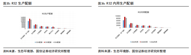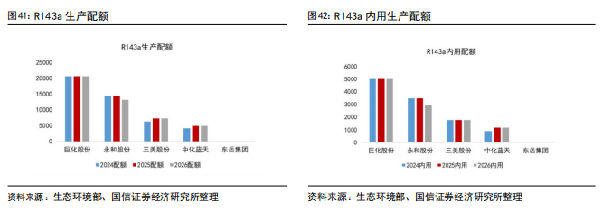 4.3HFCs:R32、R125、R134a较2025年初配额有所增加,R143a、R152a、R227ea有所减少,两次年内配额调整比例合计上调至30%,供给在配额约束下更具灵活性