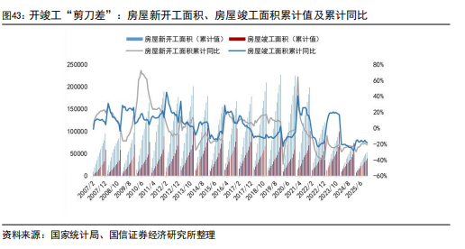2025年,地产基本面整体延续了2024年四季度边际改善的趋势,房屋新开工依旧低迷,但施工、竣工端降幅缩窄。具体来看,2025年1-11月,房地产开发企业房屋施工面积65.61亿平方米,下降9.6%;其中,住宅施工面积45.76亿平方米,下降10.0%。房屋新开工面积5.35亿平方米,下降20.5%;其中,住宅新开工面积3.92亿平方米,下降19.9%。房屋竣工面积3.95亿平方米,下降18.0%;其中,住宅竣工面积2.81亿平方米,下降20.1%。