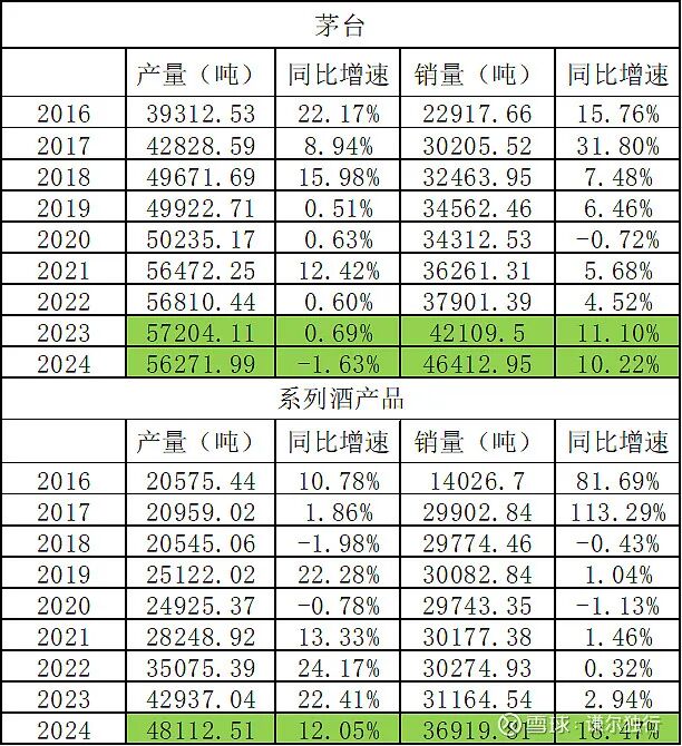 结合茅台近几年茅台酒与系列酒产量、销量情况见下表