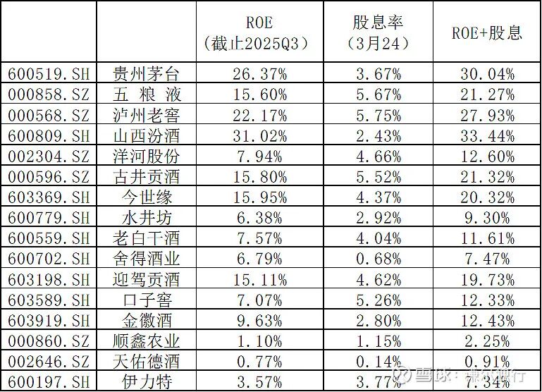 下表是当前上市酒企的ROE 股息率表,大家参考。