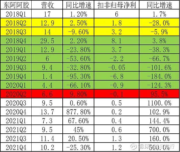 先来看同样作为可选消费品的东阿阿胶,近一轮也经历了艰难的去库存周期,它的财报数据如下表。
