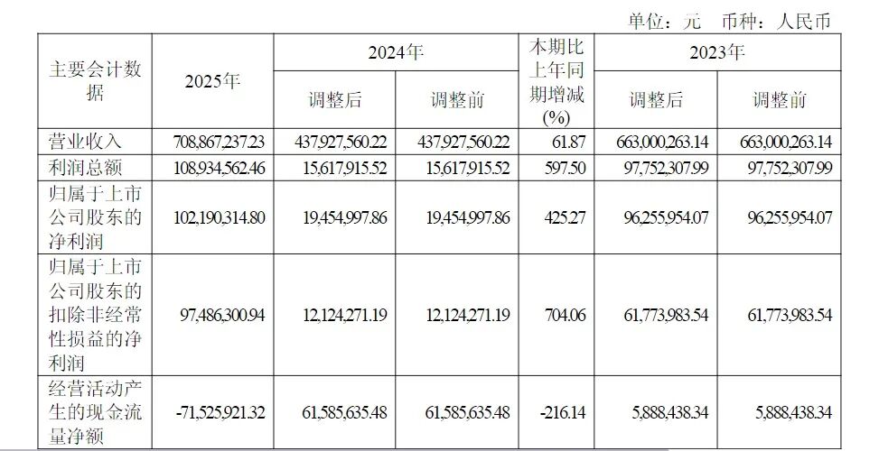 3月25日盘后,智明达发布的2025年年报显示,公司全年实现营业收入7.09亿元,同比增长61.87%;实现净利润1.02亿元,同比增长425.27%;实现扣非后净利润9748.63万元,同比增长704.06%;基本每股收益为0.61元。