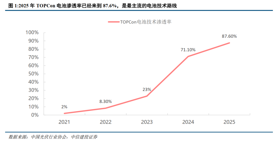1、投产速度快——TOPCon技术渗透率高,设备、工艺成熟