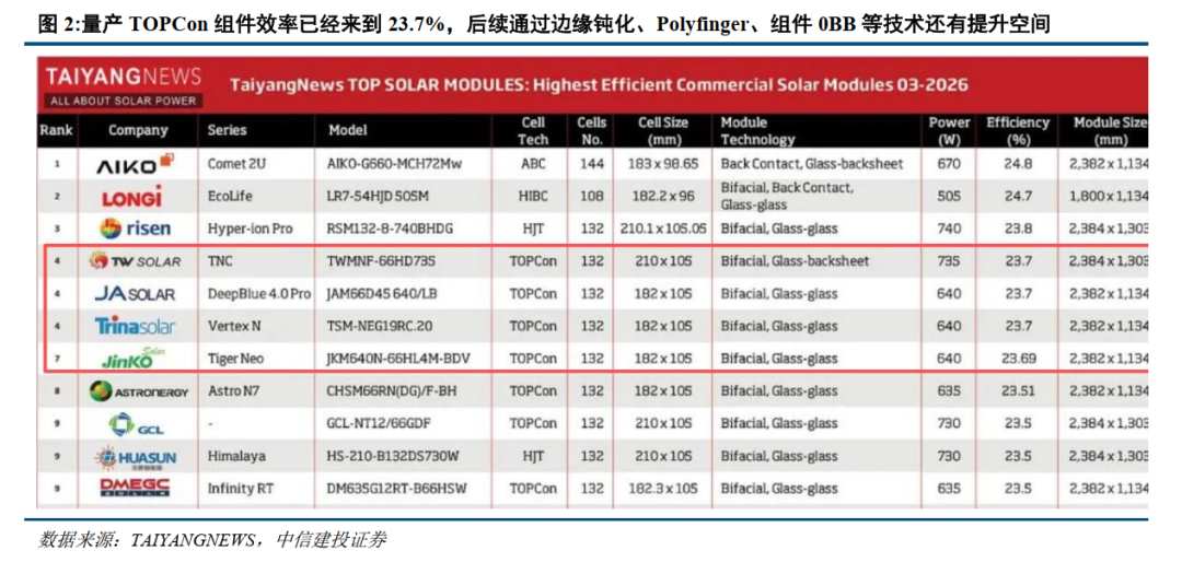 二、预计Tesla地面光伏组件技术路线将优先选择TOPCon技术