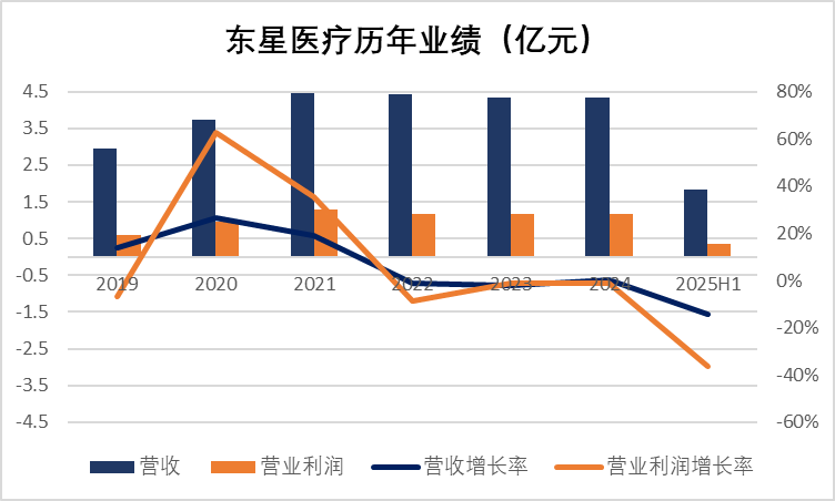 进入2025年,东星医疗开始出现负增长,业务下滑明显。