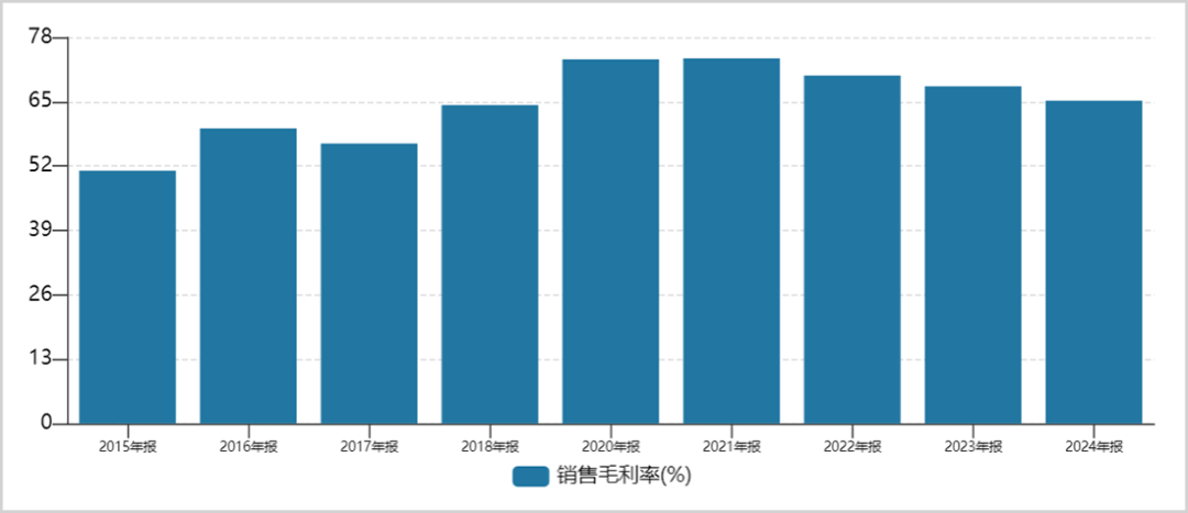 风和医疗毛利率自2021年起连续下滑,截至2024年末,其毛利率为65.2%,较2020年的峰值整整下滑8.4个百分点,已连续四年走低。净利率也随之下行,2024年已不足15%。