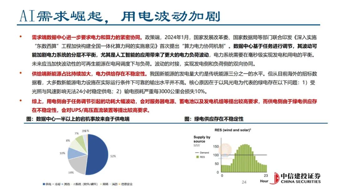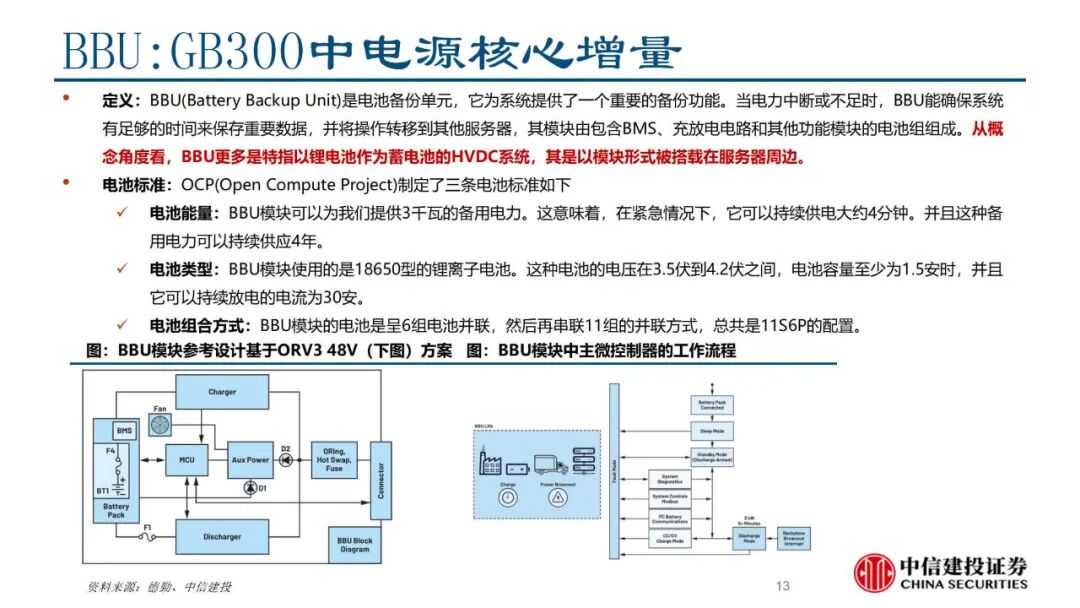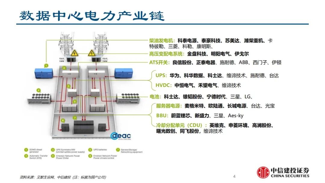 国产电源、变压器、开关柜下游新增长点出现。配电系统在算力建设中成本较高,包括电源、变压器(配电)、开关柜、UPS、柴油发电机、其他重要的技术趋势还包括BBU和超级电容。我们有希望在25-26年看到这些电力设备公司在下游数据中心,特别是国内市场大幅度增长的驱动下,获得估值和业绩的提升。