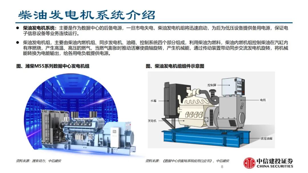 从AIDC行业来看,当投资扩产潮来临时,产业链中备电环节(柴油发电机、铅酸电池等)作为数据中心投资建设的前置条件,其需求首先爆发。且这两个环节产能具备一定刚性,如柴发产能受大直径缸体、曲轴加工环节等限制,扩产难度较大,且下游船用等需求多年不变,厂家扩产意愿不足;铅酸电池受到上游铅资源制约,需求超预期时铅价具备向上弹性等。从而柴发、铅酸电池环节具备一定的涨价潜力。类似于新能源需求爆发时,硅料、碳酸锂都曾出现大幅涨价的情形,并深刻影响到下游各环节的盈利和供需。