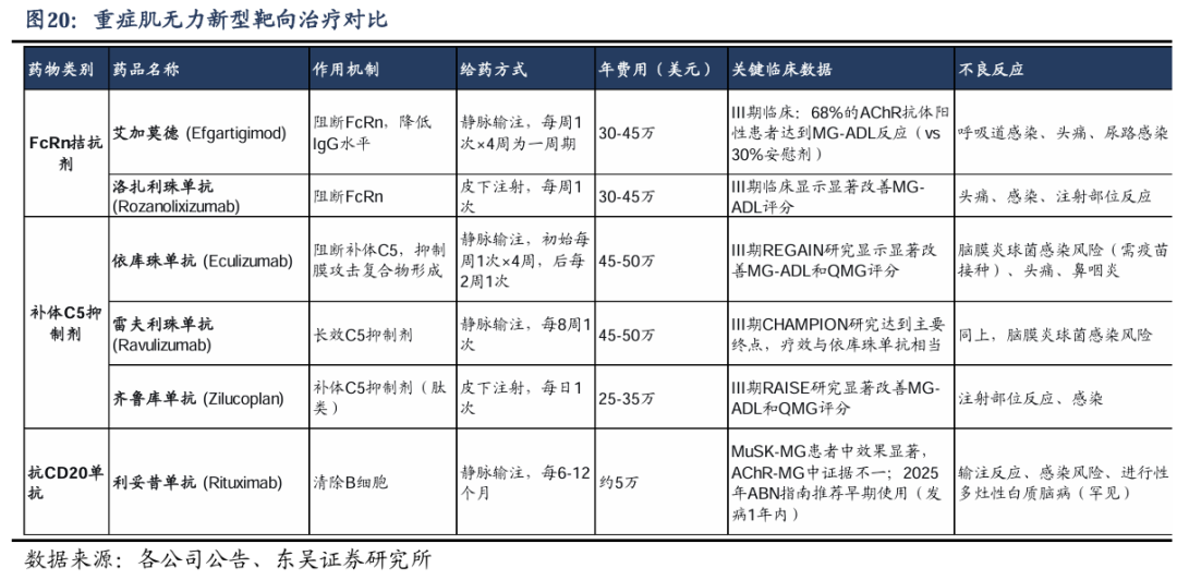 定价:美国市场方面,现有口服对症药物溴吡斯的明年治疗费用约400美元,但存在心脏传导异常、溴化物中毒等风险;新型靶向药物年费用高达30-50万美元但需注射给药。WP107作为口服溶液剂型,解决吞咽困难患者的临床痛点,同时具备快速起效的优势,保守估计4万美元/年。