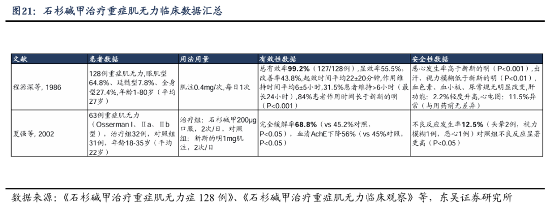 石杉碱甲口服液(WP107):针对重症肌无力,已获得FDA孤儿药认定,并获准开展美国临床试验。重症肌无力在美国影响约6万名患者,现有治疗方案存在副作用大、长期使用受限等痛点,石杉碱甲作为长效AChE抑制剂,有望提供新的治疗选择。