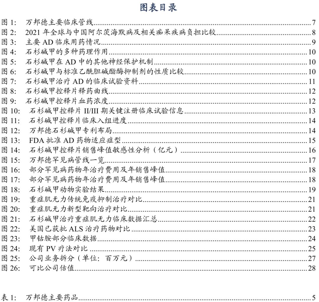 核心逻辑:2022年以来,公司全面向国际化创新药企转型,经过多年积累,在神经、罕见病领域已构建完善的研发体系,当前正处于管线爆发前夜:1)石杉碱甲控释片正在全力推进III期临床,未来有望成为AD一线用药,瞄准AD广阔市场;2)WP103、WP107、WP205等获FDA孤儿药认定,我们预计多款药物今年将进入美国三期临床,BD潜力大。
