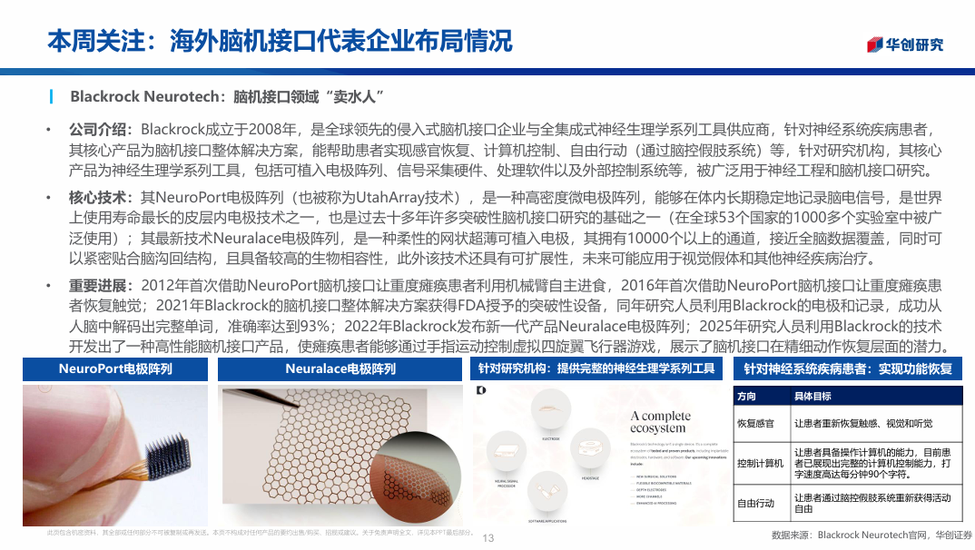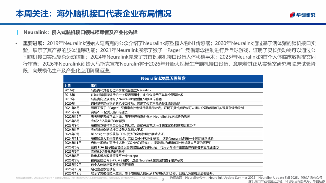 华创医药周观点:海外脑机接口代表企业布局情况 2026/01/10