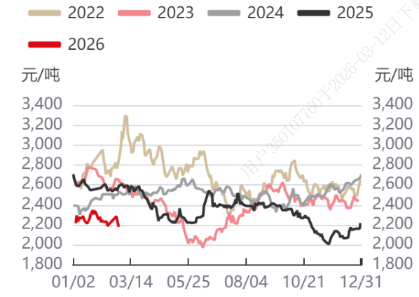 甲醇期货价格走势(来源:同花顺)