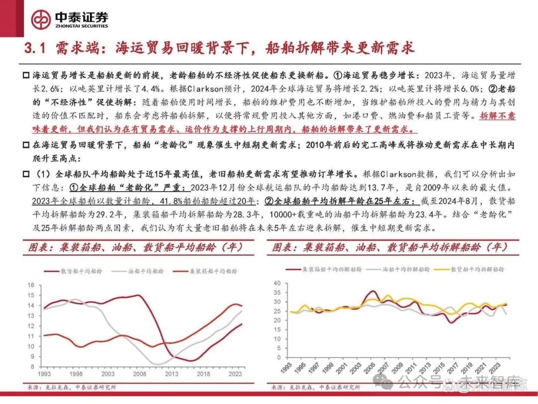 需求端:海运贸易回暖背景下,船舶拆解带来更新需求