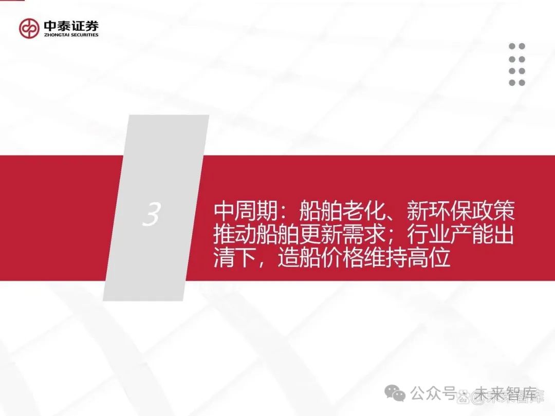 中周期:船舶老化、新环保政策 推动船舶更新需求;行业产能出 清下,造船价格维持高位