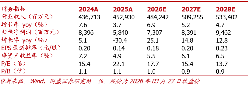 收入稳健增长,业绩有所承压。2025年公司实现营收4529亿元,同增4%;归母净利润58亿元,同降30%;扣非业绩46亿元,同降29%,业绩承压主要受毛利率下降、资产处置收益与投资收益减少以及减值损失增多影响;Q4单季营收/归母/扣非业绩分别同降9%/44%/46%。分业务看,工程建设营收3890亿元,同增6%,其中新能源工程同增2%;勘测设计/工业制造/投资运营(新能源发电)分别同增6%/6%/7%(30%)。分地区看,境内/境外分别实现营收3773/756亿元,同比-1%/ 35%,海外收入高增。全年现金分红13.8亿元,占归属普通股股东净利润的25%,同比提升5pct。