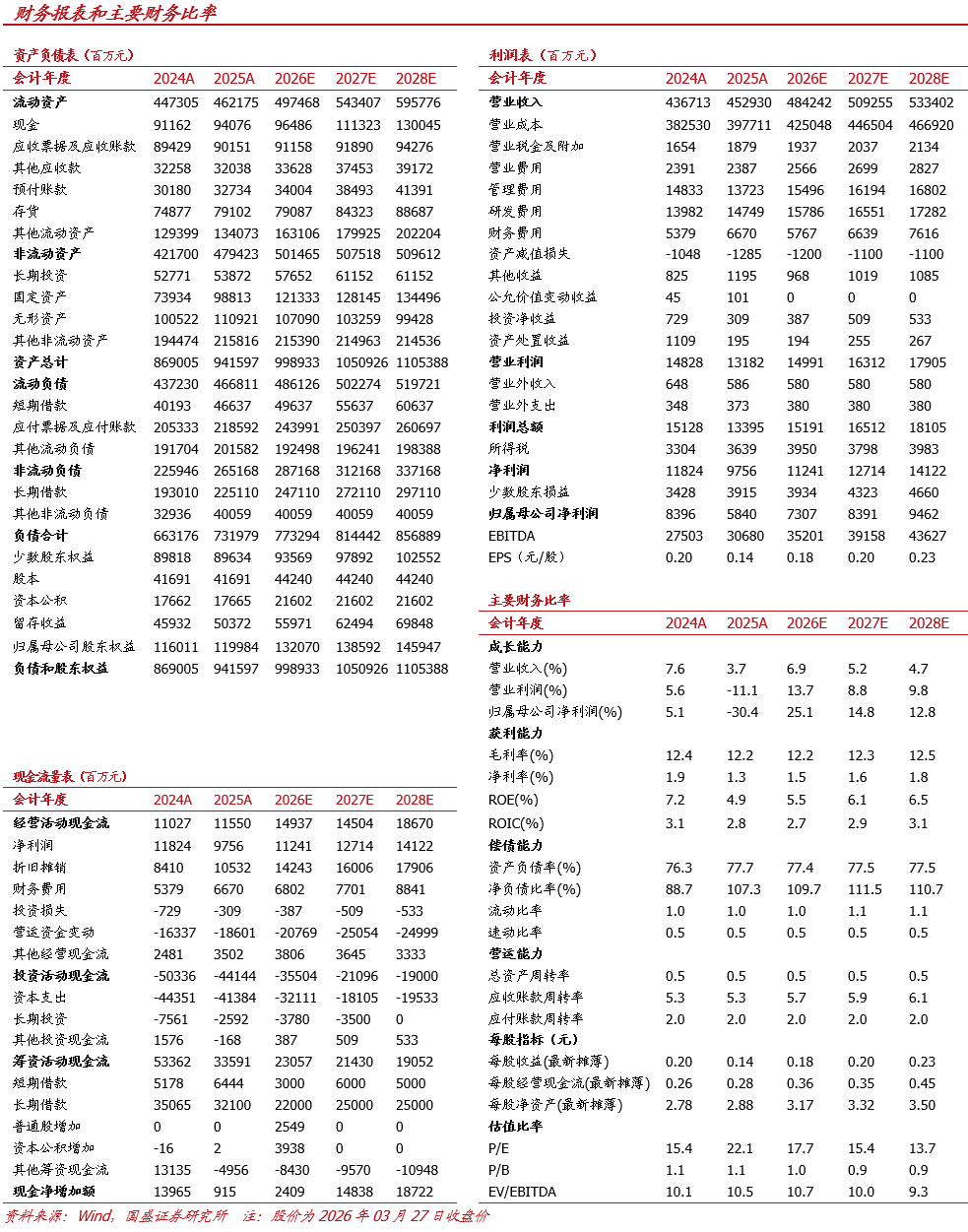投资建议:公司2025年业绩承压,后续伴随在手订单转化以及新兴业务推进,业绩有望逐步修复,预计2026-28年归母净利润为73/84/95亿元,同增25%/15%/13%,当前股价对应PE为18/15/14倍,维持“买入”评级。
