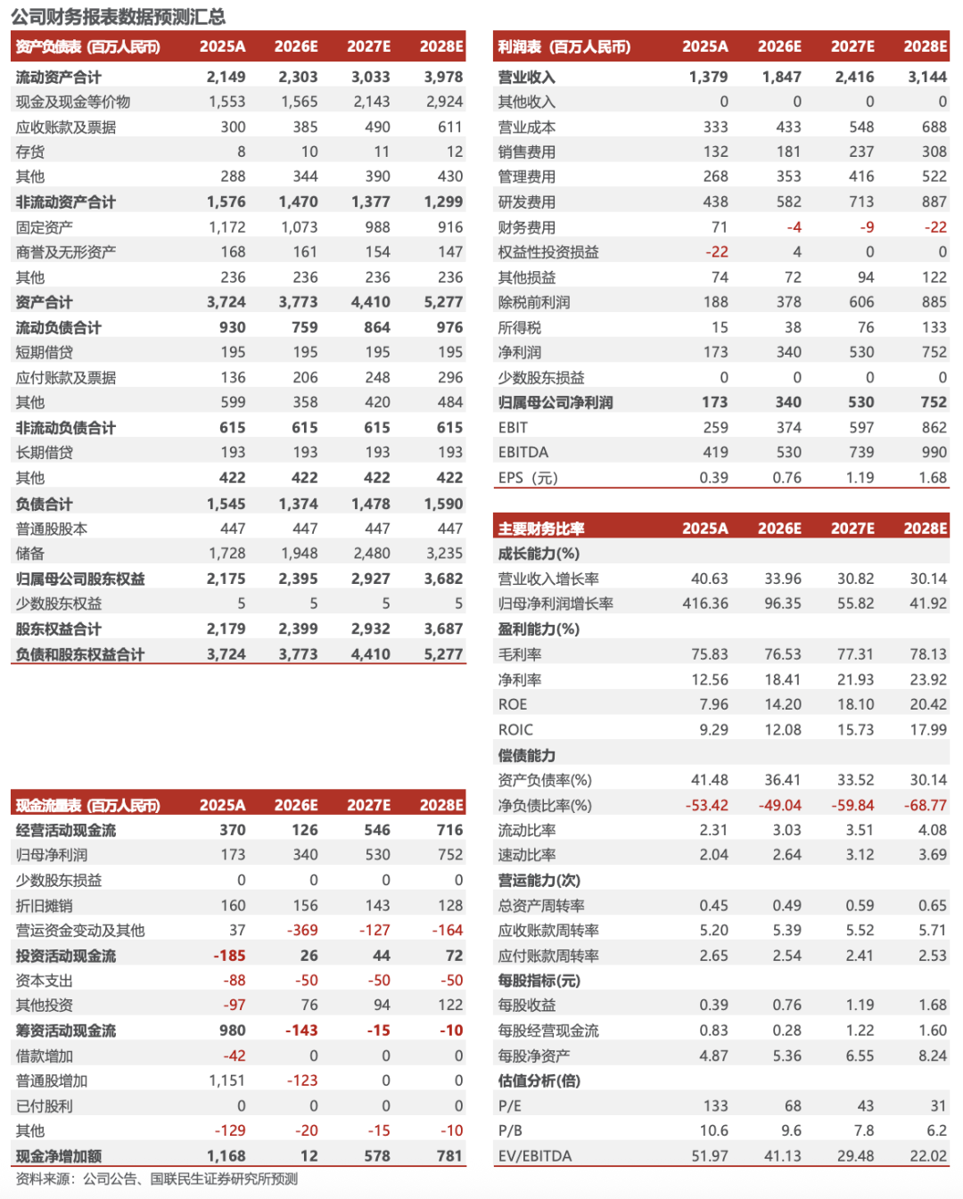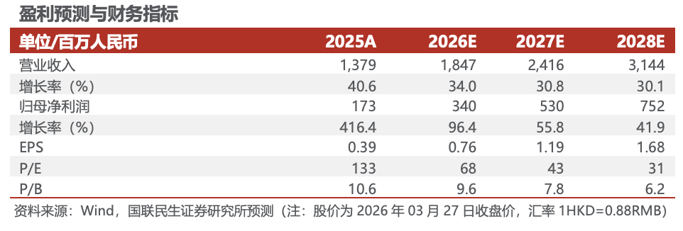 投资建议:基石业务高景气 抗体平台高潜力,我们预计2026–2028年公司营业收入分别为18.47、24.16、31.44亿元,对应增速分别为34.0%、30.8%、30.1%;归母净利润分别为3.40、5.30、7.52亿元,对应增速分别为96.4%、55.8%、41.9%;对应P/E分别为68X、43X、31X,维持“推荐”评级。