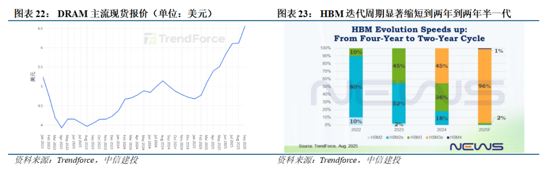 DRAM产能供给紧缺趋势不变,SK海力士等龙头厂商加速扩产。从供给端看,HBM供应仍然紧缺,相应持续挤占DRAM产能,25Q2~Q3 DRAM厂商现货报价加速攀升;部分美国与国内厂商已经开始和晶圆厂签订2-3年的长期合同进行锁价。根据Trendforce援引The Bell报道,SK海力士计划通过清州DRAM工厂M15X和利川M16的扩产,在26H2将其DRAM晶圆产量提高到60万片/月,和三星的DRAM晶圆产能处于同一水平。具体来看,M15X在投产初期将保持在10000片/月的DRAM晶圆,到26Q4将爬坡至5万片/月。