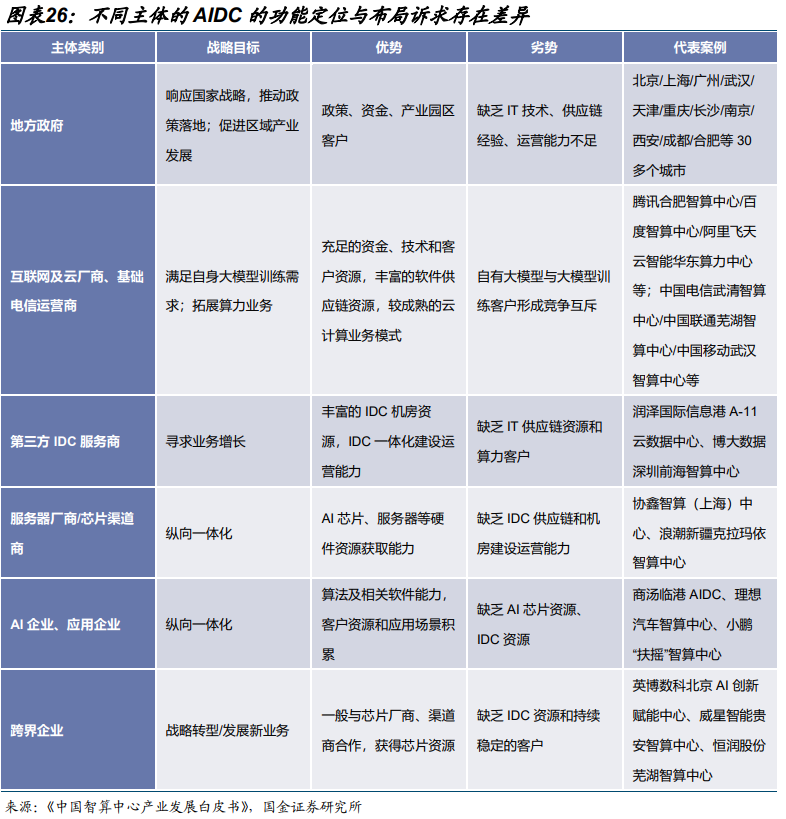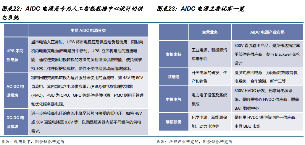 1)需求侧:①下游推理需求伴随 AI 手机等终端 AI 进入落地放量临界点确定性增强;②大模型 Scaling Law 仍然有效,模型迭代持续加速提升训练需求的确定性。2)供给侧:①国产 GPU 性能持续提升;②国内 CSP 厂商加速适配国产 GPU。上述背景下,GPU、服务器、柴发、电源、IDC、云 6 大产业环节供需两高,其中,AI 服务器整合 GPU、存储等直接影响模型效果的硬件基础;AIDC 承载算力与数据;AIDC 电源是 AIDC 的主要供电系统;柴油发电机是 AIDC 不可或缺的备用电力来源;大模型公有云本质上是算力的共享化与弹性化。