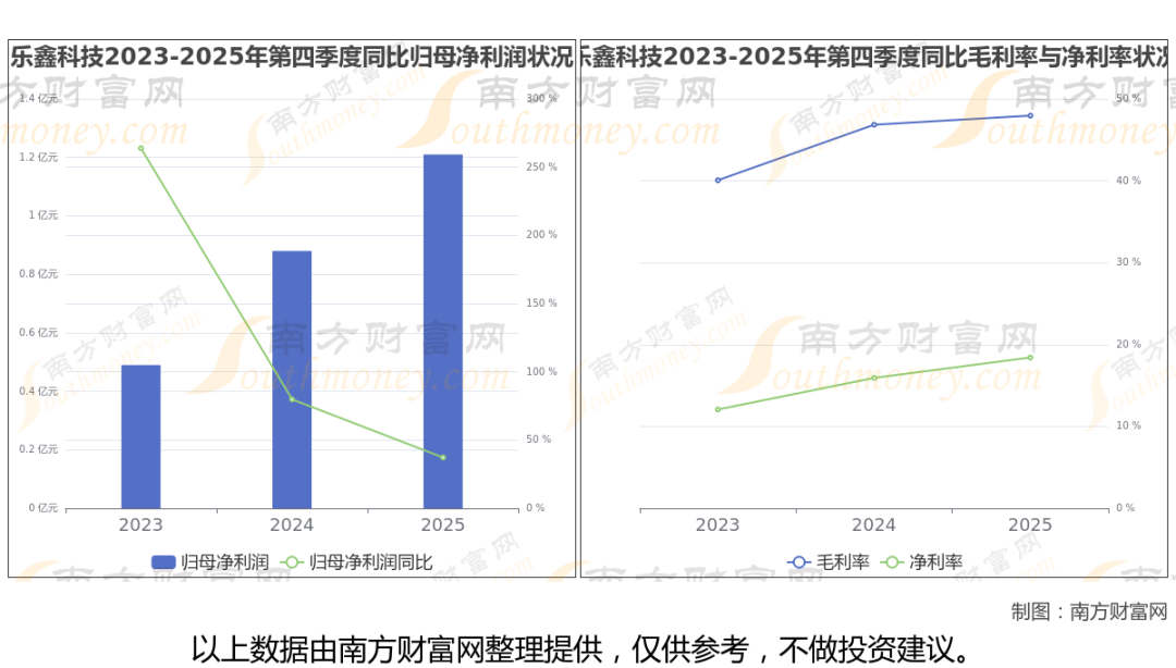 2025年第四季度季报显示,乐鑫科技公司实现净利润1.21亿,同比上年增长率为37.26%,毛利率47.96%。